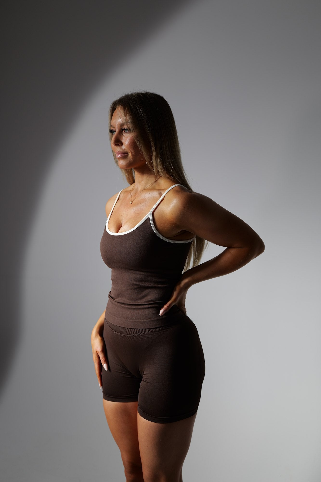 De tunna axelbanden och den kontrasterande kanten ger en feminin, sportig look du kommer vilja bära varje dag. Stilren, bekväm och så mjuk att du aldrig vill ta av den.